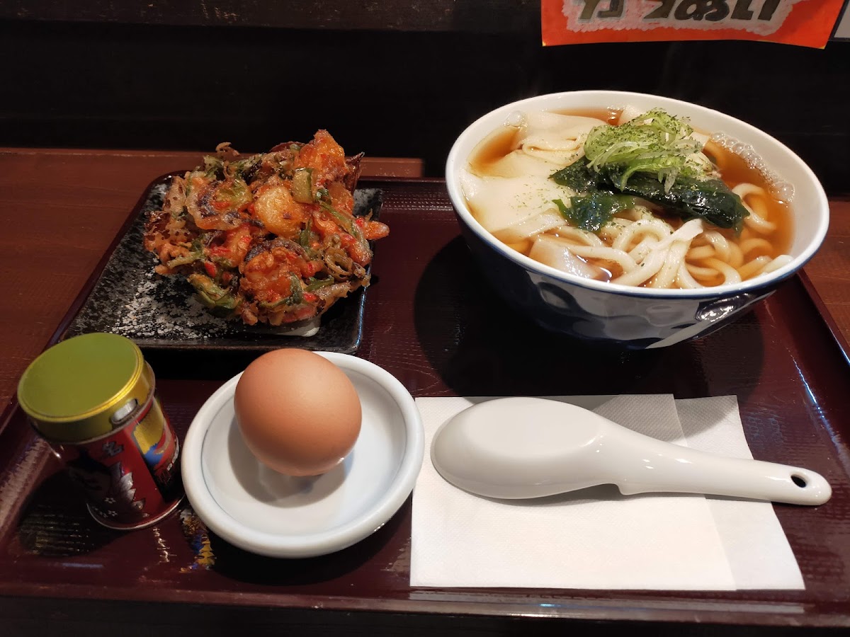 For those who appreciate classic preparation, 盛りうどん (Mori Udon) delivers clean, straightforward flavor. Served chilled, it allows the texture of the noodles to shine, especially when dipped into the accompanying sauce. On the warmer side, かき揚げうどん brings a satisfying contrast-crispy vegetable fritters paired with hot broth and chewy udon, ideal for a relaxed lunch break.